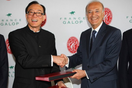 Signature entre France Galop (Bertrand Bélinguer) et China Horse Club (Teo Ah King)
