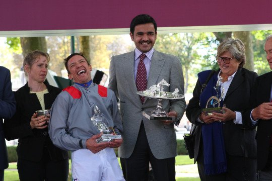 La joie de Lanfranco Dettori lors de la remise des trophées du Gr.1 - Le Vermeille