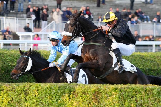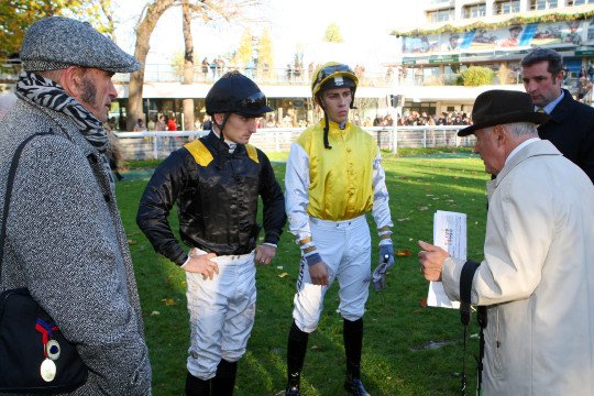 David Cottin et l'entraîneur M.Nicholls victorieux dans un Gr.1 avec Ptit Zig