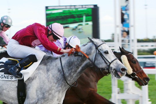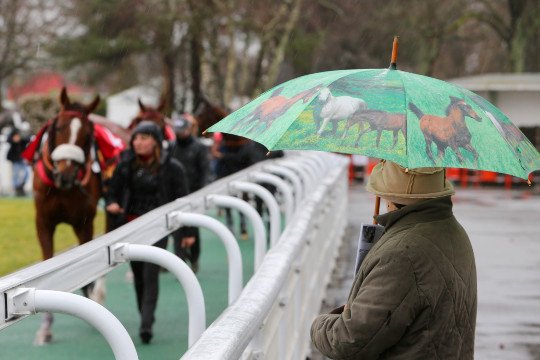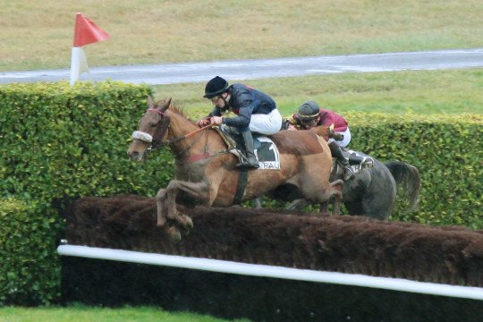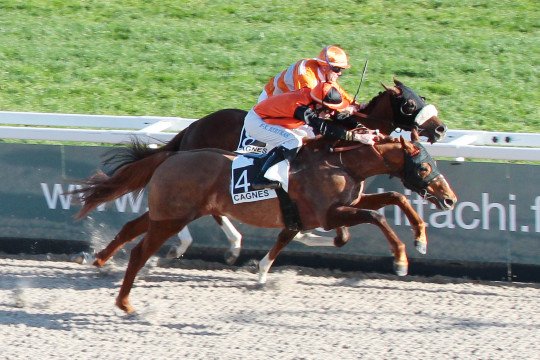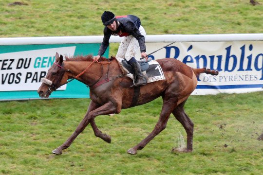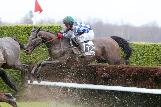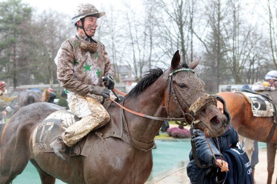 Mathieu Delage et Roi Ken sur la piste très humide de Pau