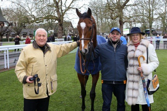 Joli et performant, Majestic Mount en compagnie de ses éleveurs propriétaires Mr et Mme Graham Robinson, a couru 15 courses pour 4 victoires et 11 places