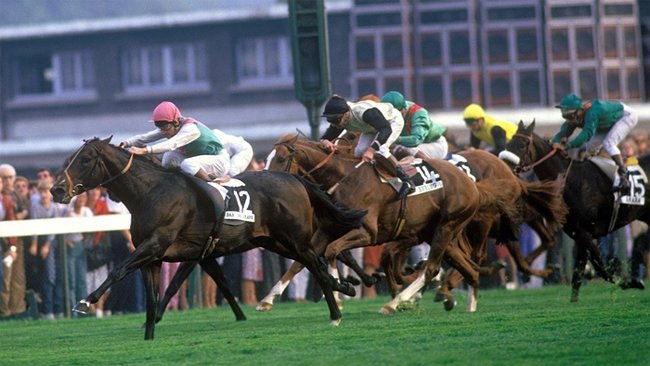 L'accélération extraordinaire de Dancing Brave dans le Prix de l'Arc de Triomphe 1986.