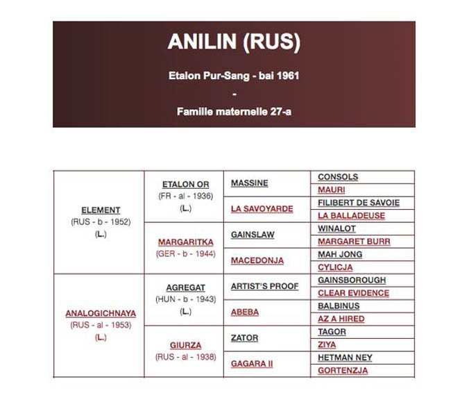 Anilin est né en 1961, comme un certain Northern Dancer d’ailleurs, mais à Voskhod Stud près de Krasnodar dans le sud de la Russie. Sa conception est simple à résumer : son père Element avait remporté treize victoires dont le Derby local et sa mère Analogichnaya, Championne de sa génération à 3 ans et gagnante des Oaks russes, avait même accroché une place de deuxième dans ce même Derby, un an après lui. Un croisement classique, à vocation clairement classique.