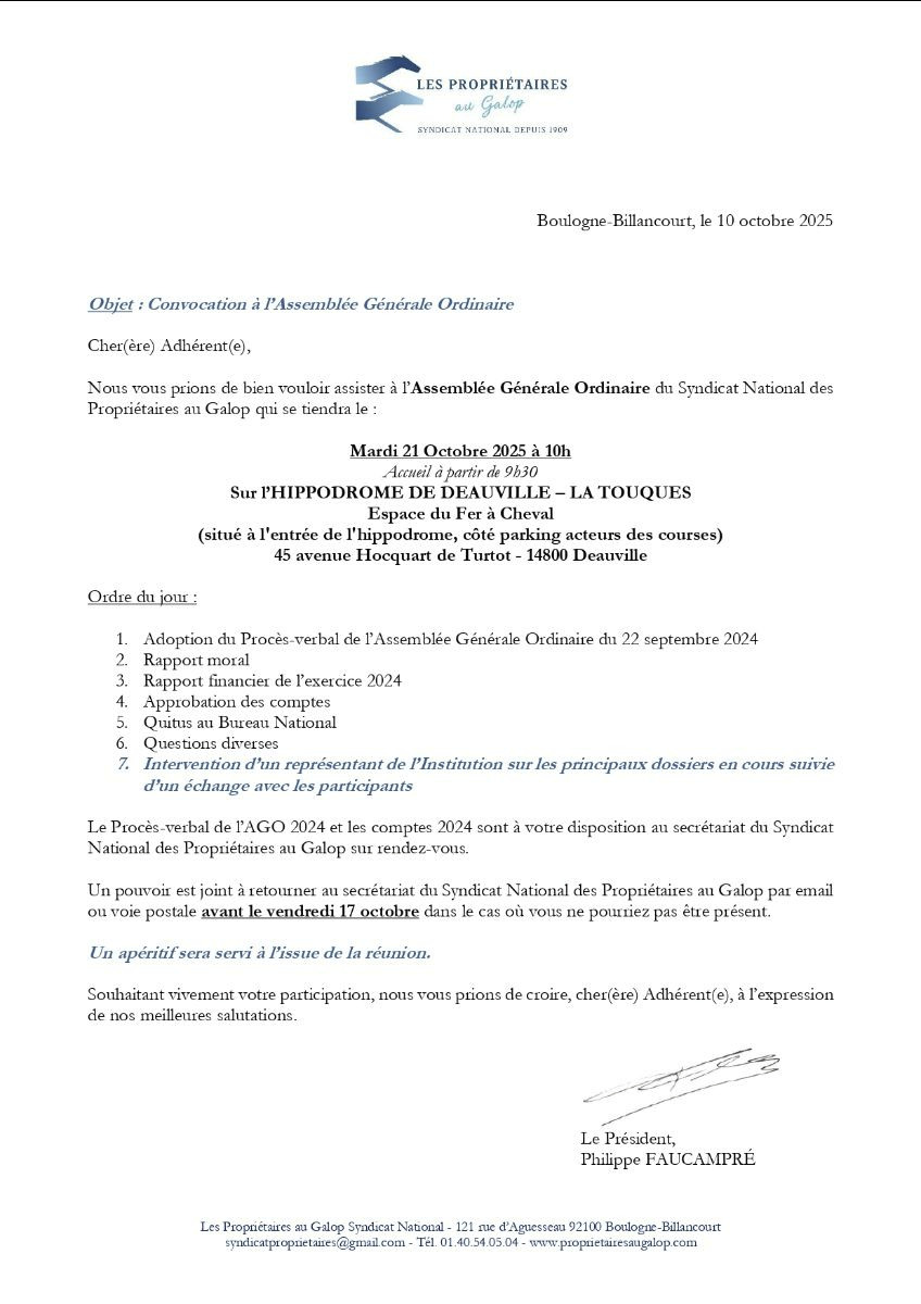 Syndicat des Propriétaires : AG le 21/10 à Deauville