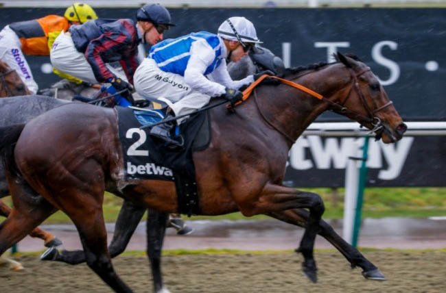 Funny Kid, victorieux du All Weather Marathon Championship sous la selle de Maxime Guyon en mars 2018 à Lingfield.