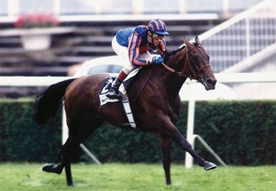 Montjeu lors de sa victoire dans le Grand Prix de Saint-Cloud. Comme par hasaard, sa production est particulièrement efficace sur ce même hippodrome.