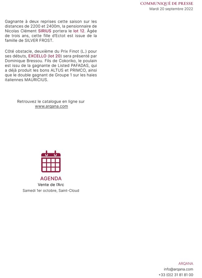 Tenue comme le veut la tradition la veille du dimanche de l'Arc de Triomphe sur l'hippodrome de Saint-Cloud, la Vente de l'Arc ARQANA dévoile les 32 premiers lots de son catalogue. Du...