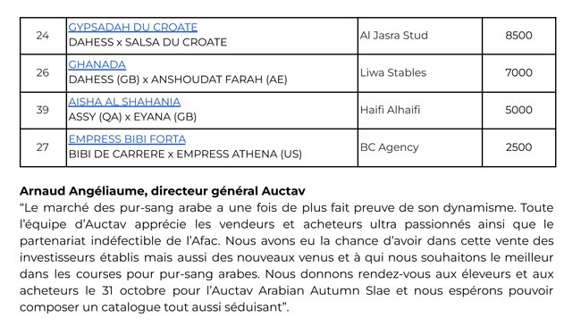 Auctav Arabian Summer Sale : top price à 52.000 euros