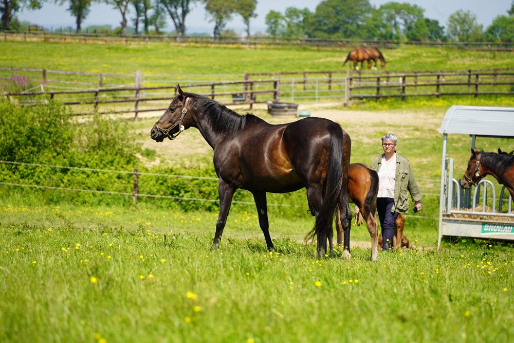 La première poulinière d’Elise Drouet lui avait été donnée par Jean-Pierre Dubois. Il s’agissait de Flower War puis sont arrivées Miss America qui a donné la gagnante de Listed Miss Liberty et enfin la maiden Armure Bleue, une petite-fille d’Aquarelliste par Invincible Spirit achetée pendant l’hiver 2016-2017.