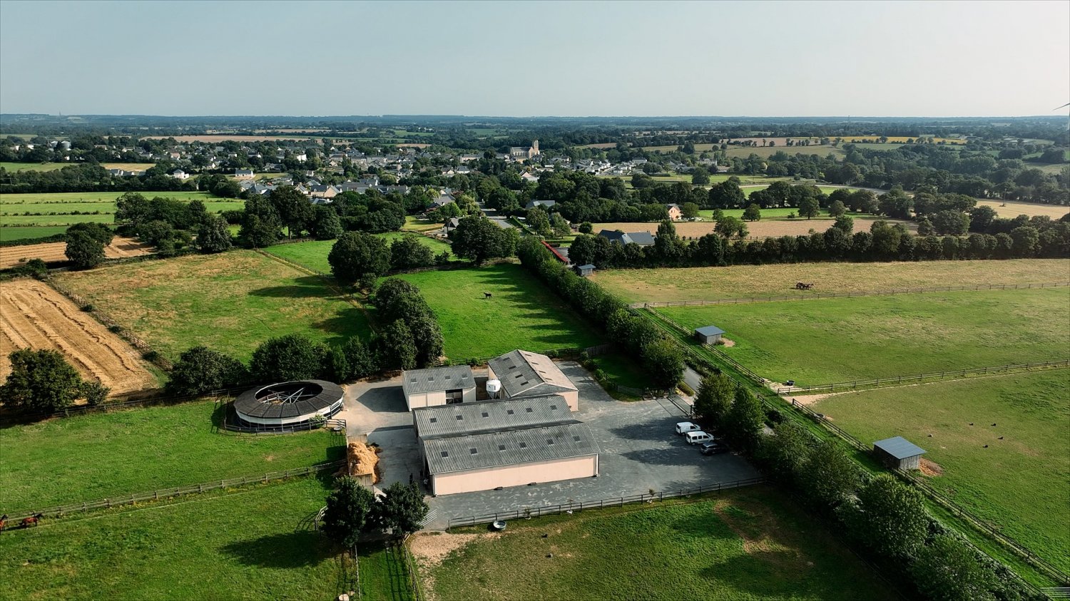 A l'automne 2008, Marie-Laure Collet s'est installée en Gaec avec son père et a construit des structures toutes neuves pour accueillir une clientèle extérieure à laquelle elle propose toutes les prestations d'élevage. Juste en face de l'hippodrome de Méral, au sud de la Mayenne, le Haras de Clairefontaine s'étend en 2024 sur 140 hectares comprenant des terres de culture et des prairies pour les chevaux qui sont clôturés en lice de bois. Elle a fait sortir de terre un bâtiment comportant 20 boxes (4m X 4m), plus une barre d'échographie et une balance pour la préparation des yearlings.