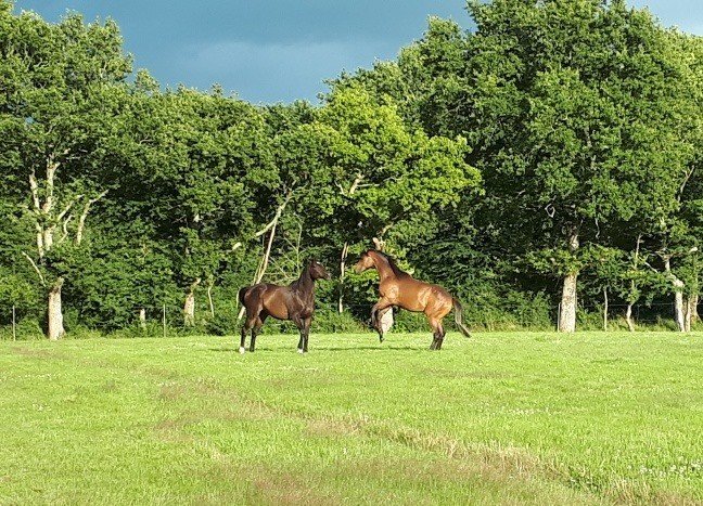 Vous pourrez y découvrir 80Ha de prairies naturelles protégées par des haies et 4Ha de paddocks stabilisés pour la période hivernale. Le climat océanique particulièrement doux offre par ailleurs des conditions idéales au développement des poulains tout au long de l’année.