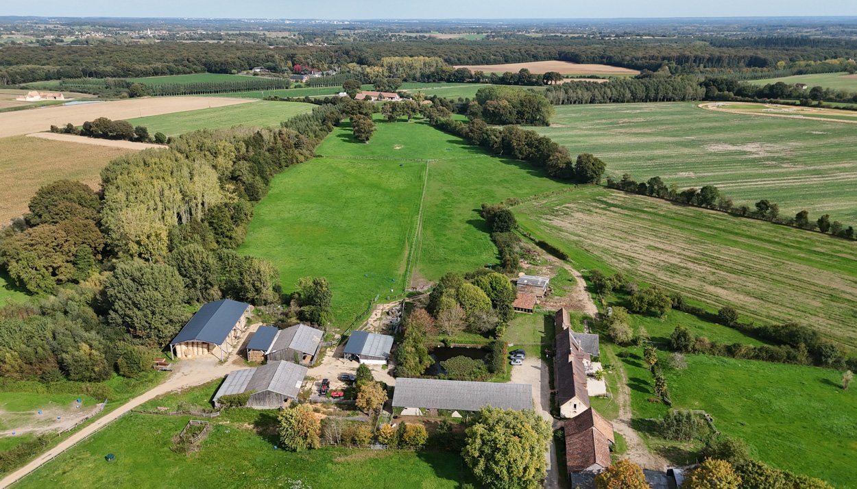 L’élevage s'étend sur environ 70 ha de prairies au cœur du fief familial sarthois, ayant vus grandir des générations de poulains percherons, des bovins, puis des chevaux de courses depuis 1989.